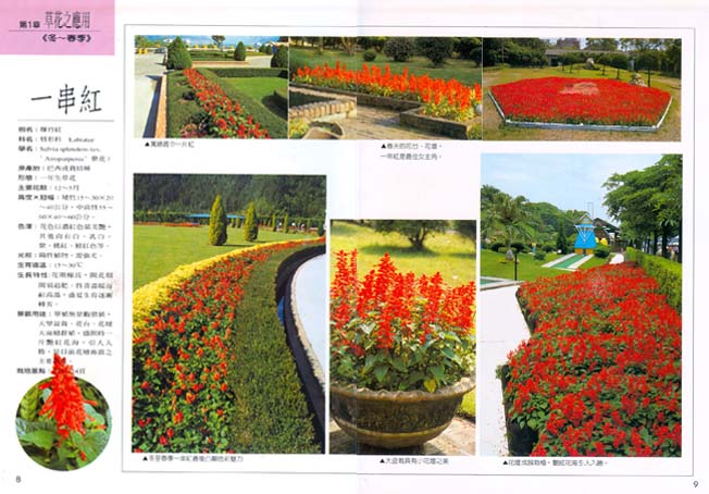 第一輯:草花之應用、觀葉植物之應用、草坪之應用、造園植物在高樓中庭景觀之應用,地被植物在造園上的應用等。