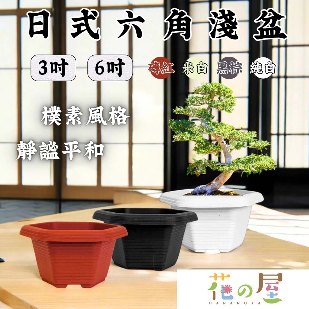 日式六角淺盆(3、6吋) 磚紅色/黑棕色/白色/米白色