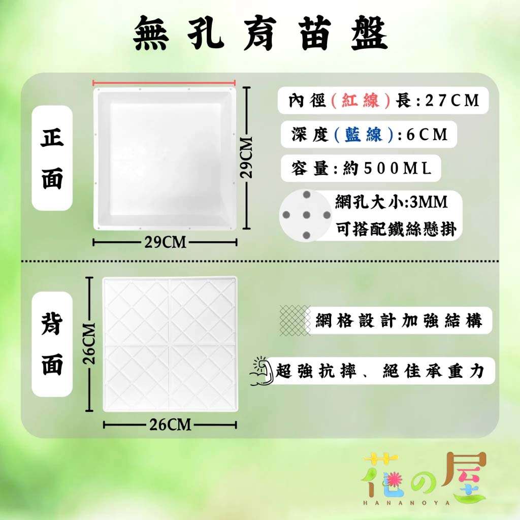 方型育苗盤-有孔/無孔-五種顏色