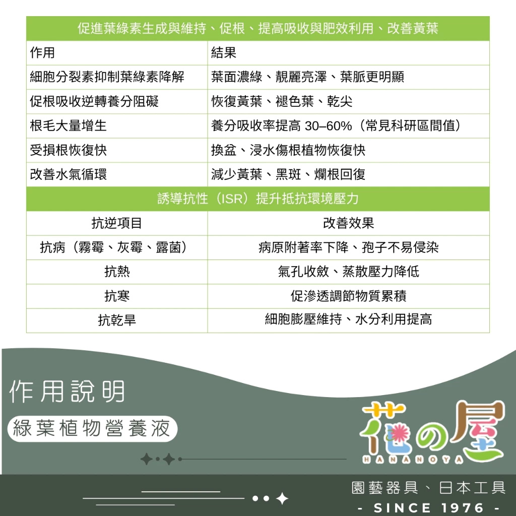 亮葉、促根、養分吸收提升、維持植株生長勢更穩定