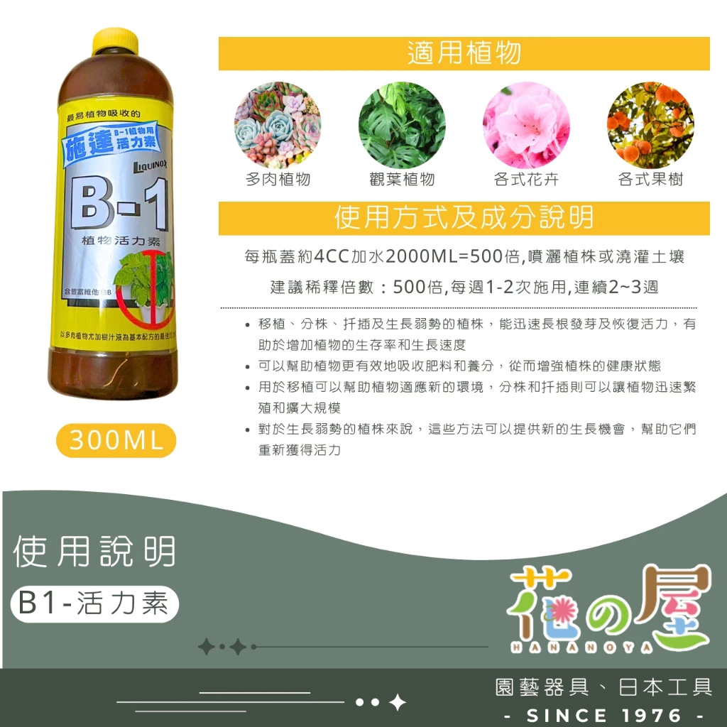 “含維他命B群,促進根系再生,幫助移植、扦插後快速恢復活力”