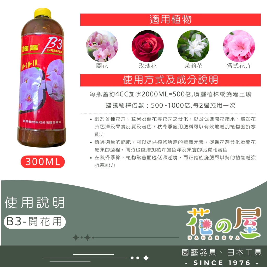 適用植物:玫瑰、蘭花、茉莉及各類開花植物