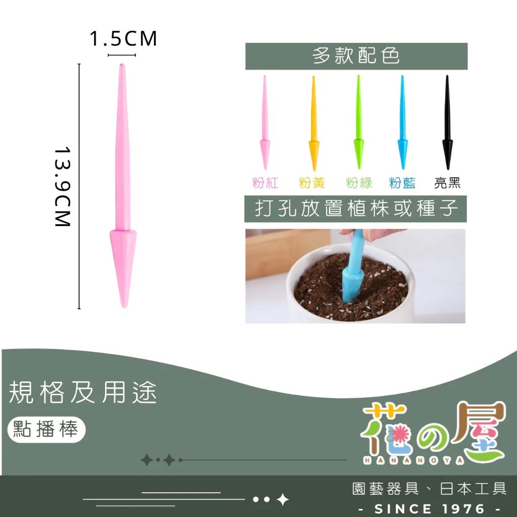 雙功能一體:點播棒(大小打孔)/ 起苗器(安全移苗、撫平表面)