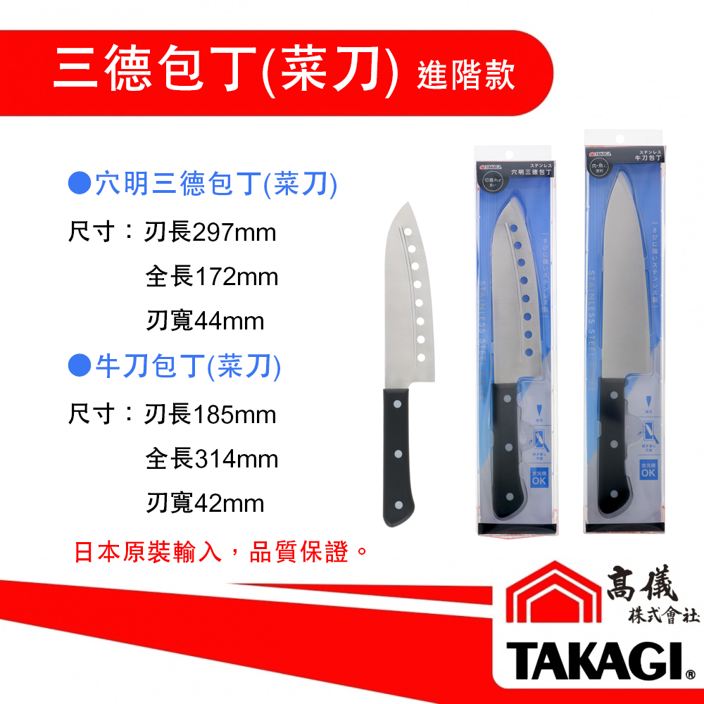 日本原裝進口 高儀 穴明三德包丁 牛刀包丁(三德菜刀)進階款2式 日本原裝進口 不銹鋼菜刀