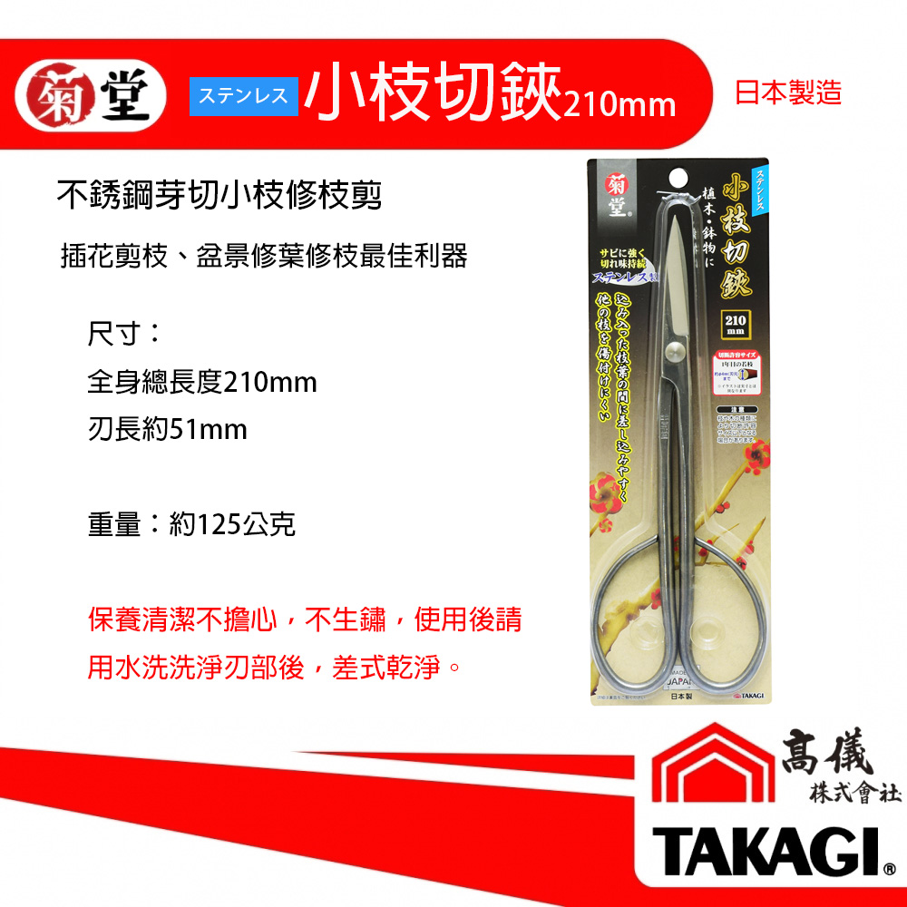 【TAKAGI 高儀|菊堂・不鏽鋼小枝切鋏|修剪藝術的永恆鋒芒】