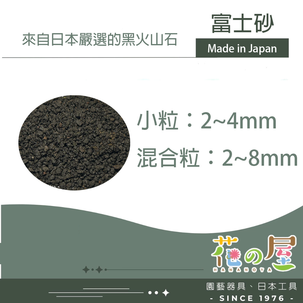 為日本產之火山砂,顆粒狀,大小均一,具多細氣孔,不會崩解,可長期重覆使用。特性為通氣性、排水性、保肥性、保水性俱佳,防止根部腐敗,可與赤玉土、鹿沼土、銅生砂等混合使用。適合各種園藝樹木、盆花、盆景、家庭菜園、多肉植物及仙人掌等栽培使用。水族作為水族缸內基底砂使用。