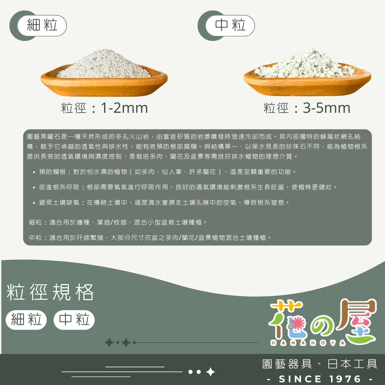 使用方法:混合其他培養土使用,黑曜石佔約15-30%使用。