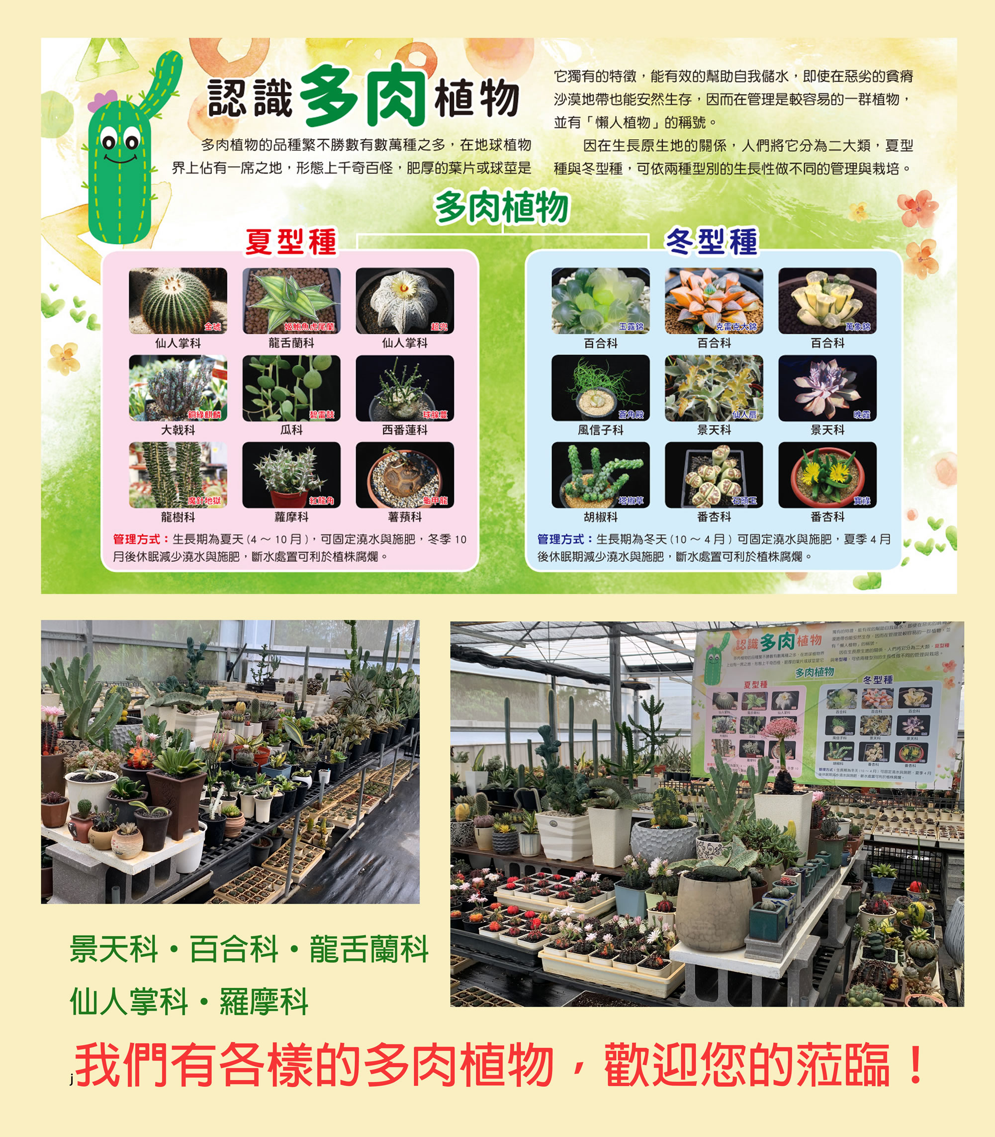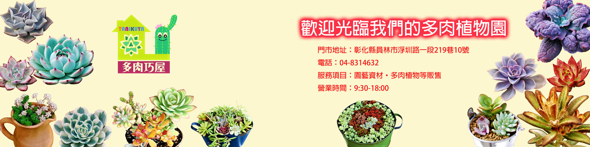 位於彰化縣員林市實體門市,專售各項多肉植物與園藝資材,包括:各種培養土、盆器與園藝用相關用器具。