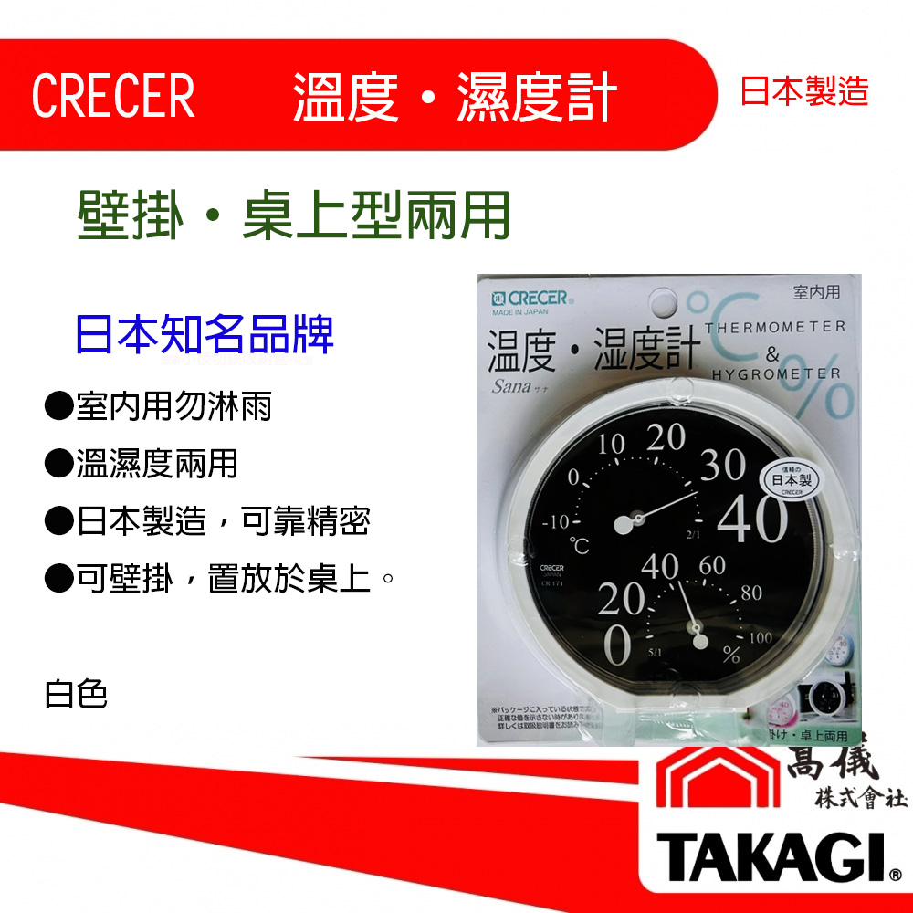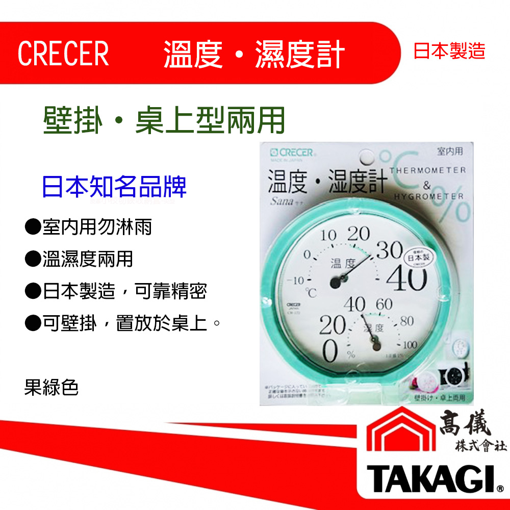 日本CRECER溫‧濕度計(壁掛‧桌上兩用)-白/綠 2款