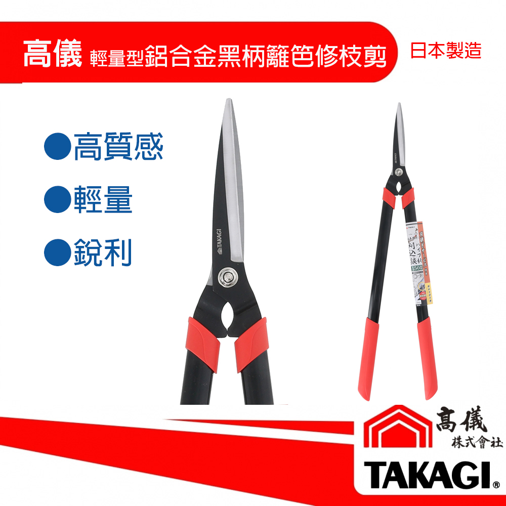 高儀-不鏽鋼柄輕量型籬笆剪150MM黑柄-日本製