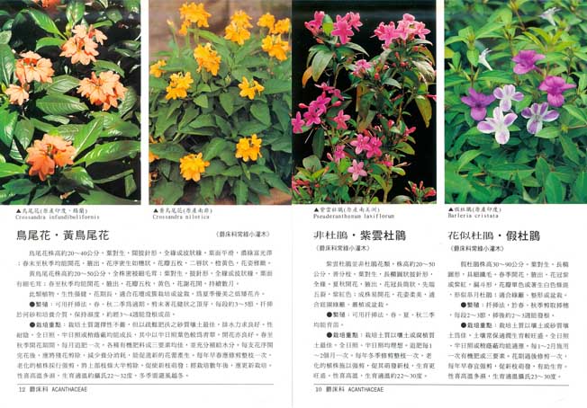 內容包括中名、別名、科名、學名、原產地、最新繁殖方法、栽培重點、花曆,花卉播種注意事項等。花卉種類按科名的英文字母順序配列,查閱方便,全書彩色精印。