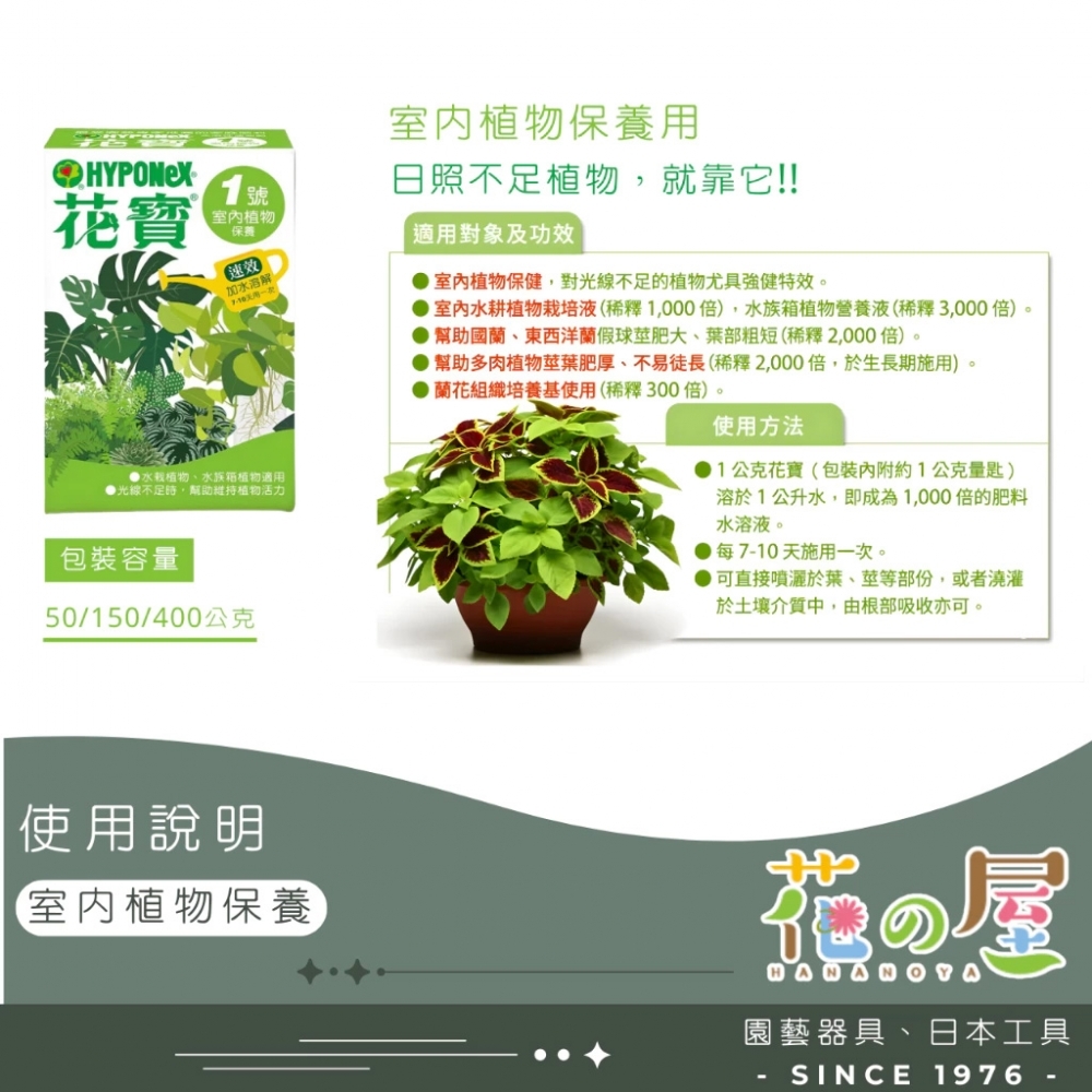 ◎花寶一號 室內植物保養用- 室內植物保健,光線不足之植物尤具強健特效。