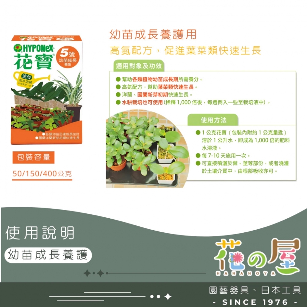 - 提供所有植物自育苗、成長、至開花結果全期所需營養。
