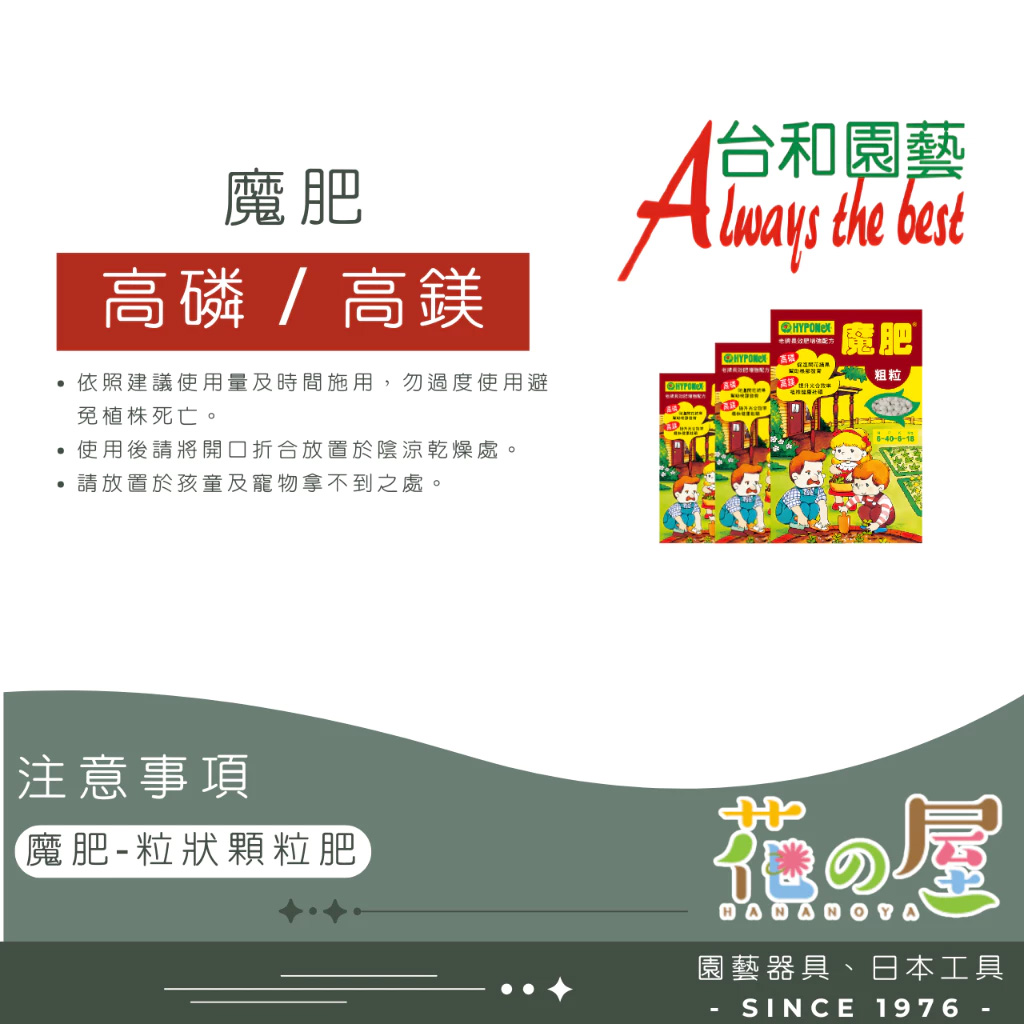 • 不肥傷的安全肥料,施用輕鬆又放心。