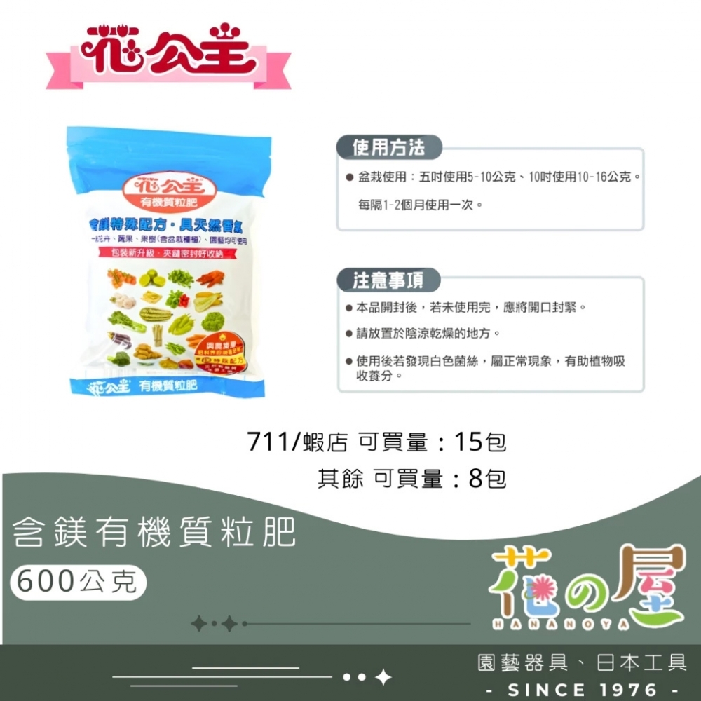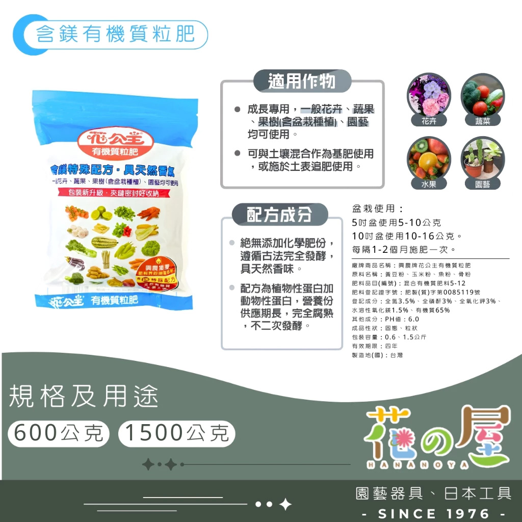 花公主(含鎂)有機粒肥-600G/1500G/10KG
