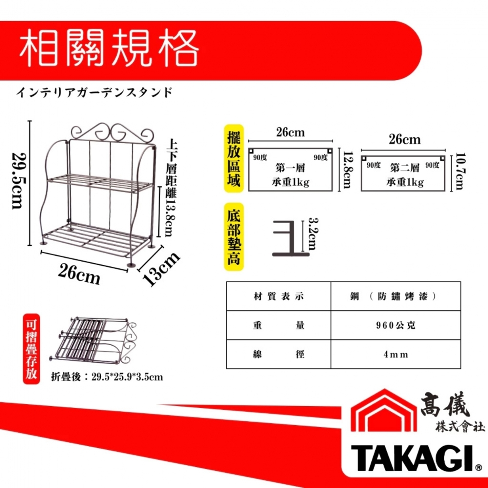 高儀TAKAGI可折疊收納花架-2層架