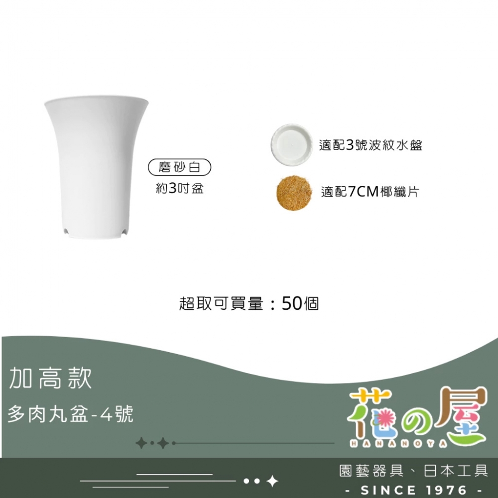 多肉丸盆(加高款)3吋/4吋-白色 多肉丸盆特色:是專門為仙人掌和多肉植物設計的盆具,特點包括:高度足夠(還有加高款喔!!)排水良好、盆口圓滑不易割傷植物、這些特色有助於多肉植物的健康生長 超商取貨數量限制