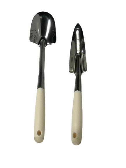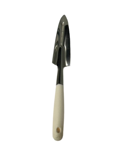 白鋼材質不易生鏽 〇圓頭鏟加土、移植、施肥較快速 〇輕巧方便,好收納