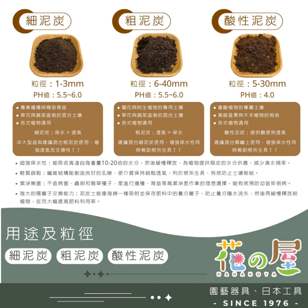 建議:中大型盆栽混合粗泥炭使用,增強透氣支撐