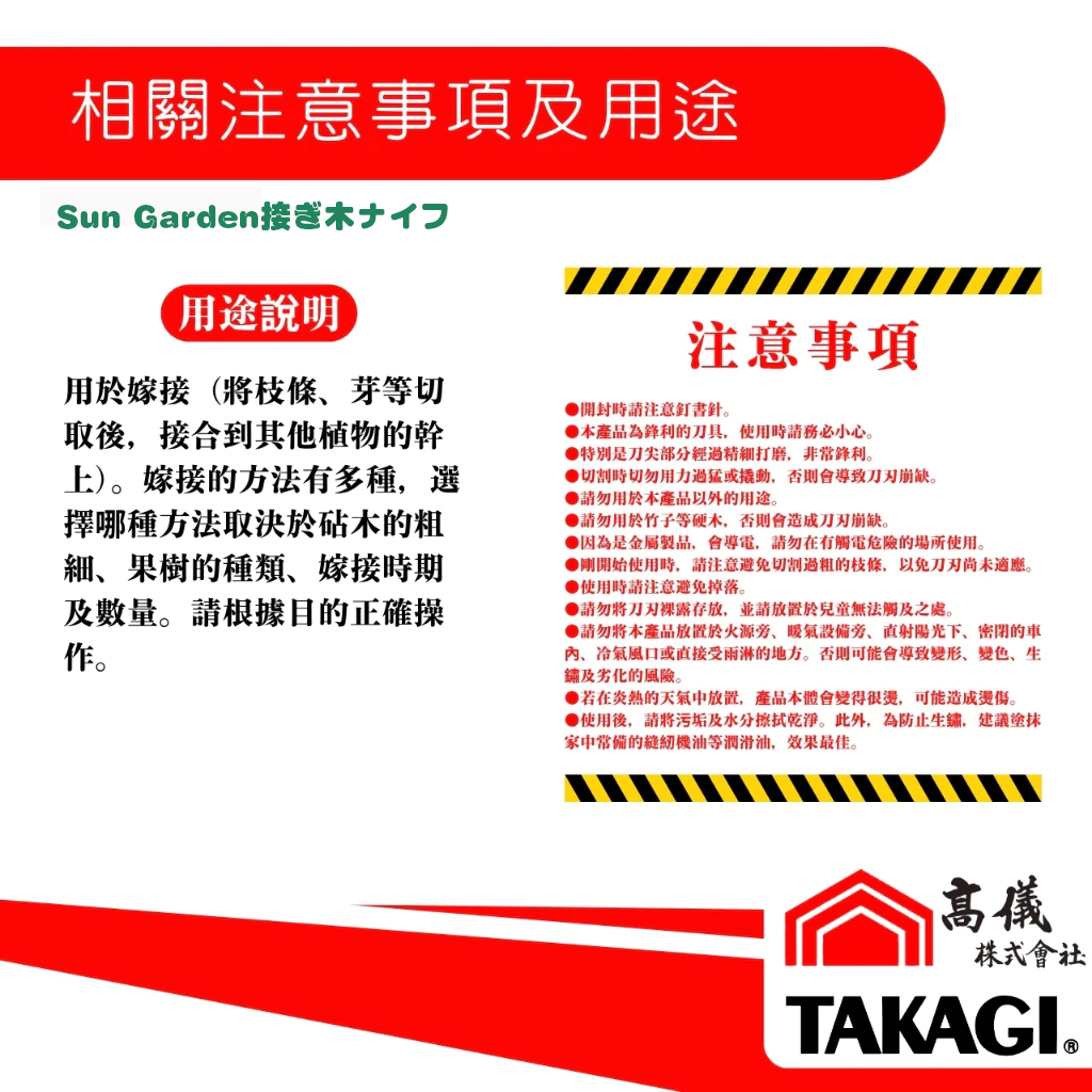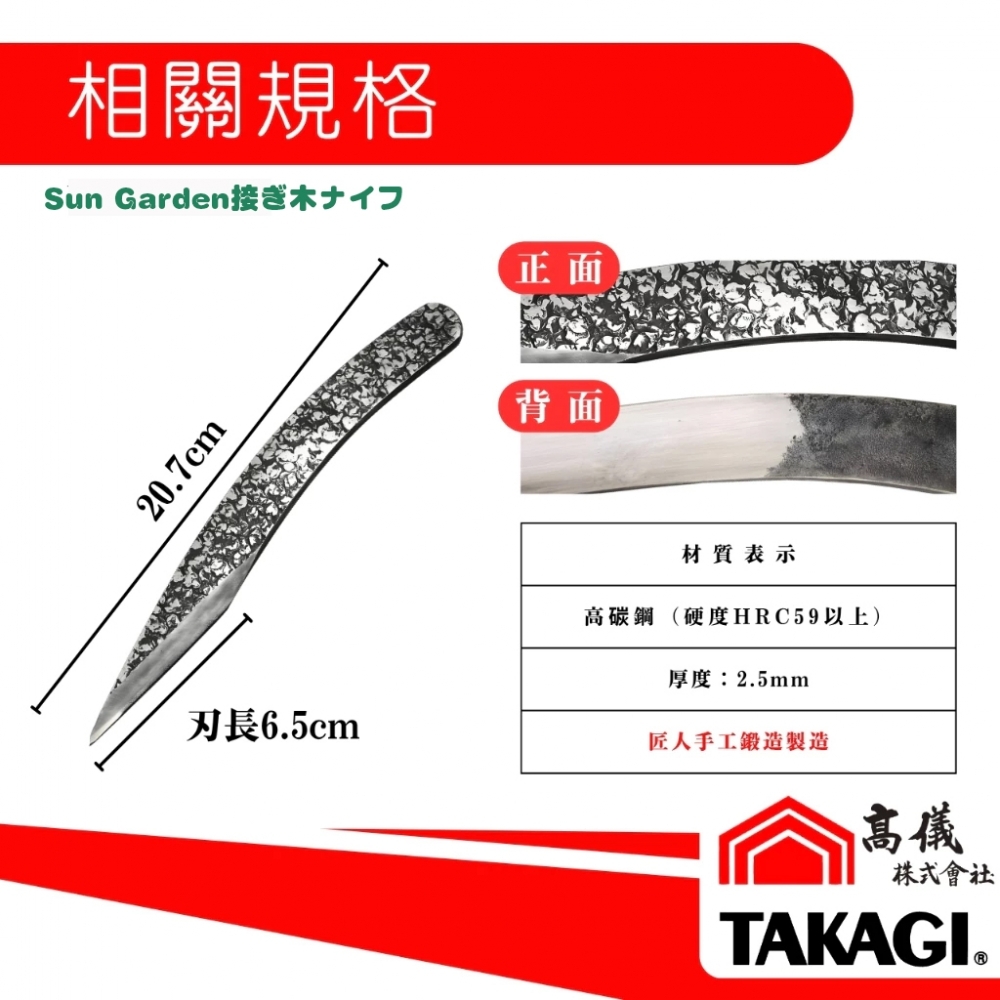 高儀Sun Garden接木刀為特殊鋼鍛造而成,用於嫁接用之刀具。
