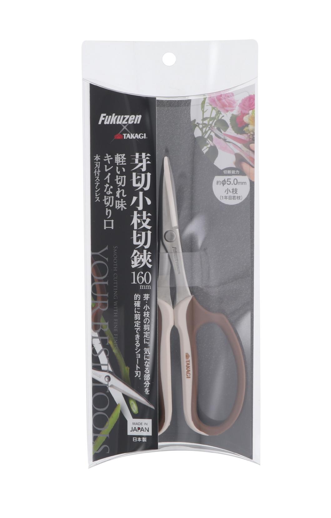 刃體為特級不銹鋼(WR-2)打造,十分堅固耐用,清潔容易、不生鏽。適用庭園樹木、花藝修剪枝較細嫩枝條、芽點之修剪。亦可當生活用枝萬用剪刀使用。