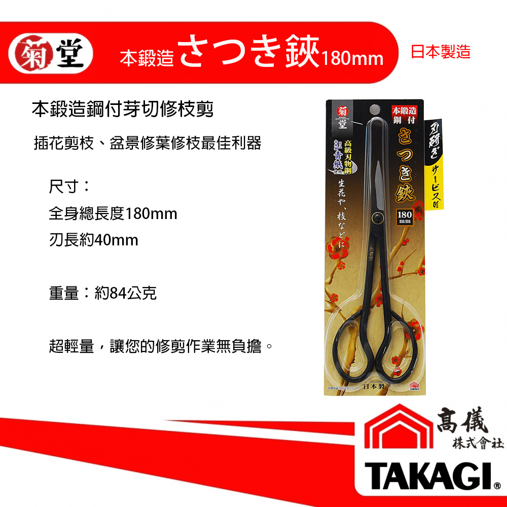 日本鍛造之日本傳統造型園藝用剪刀,十分堅固耐用,使用完需做適當清潔後上油保養,避免造成生鏽。