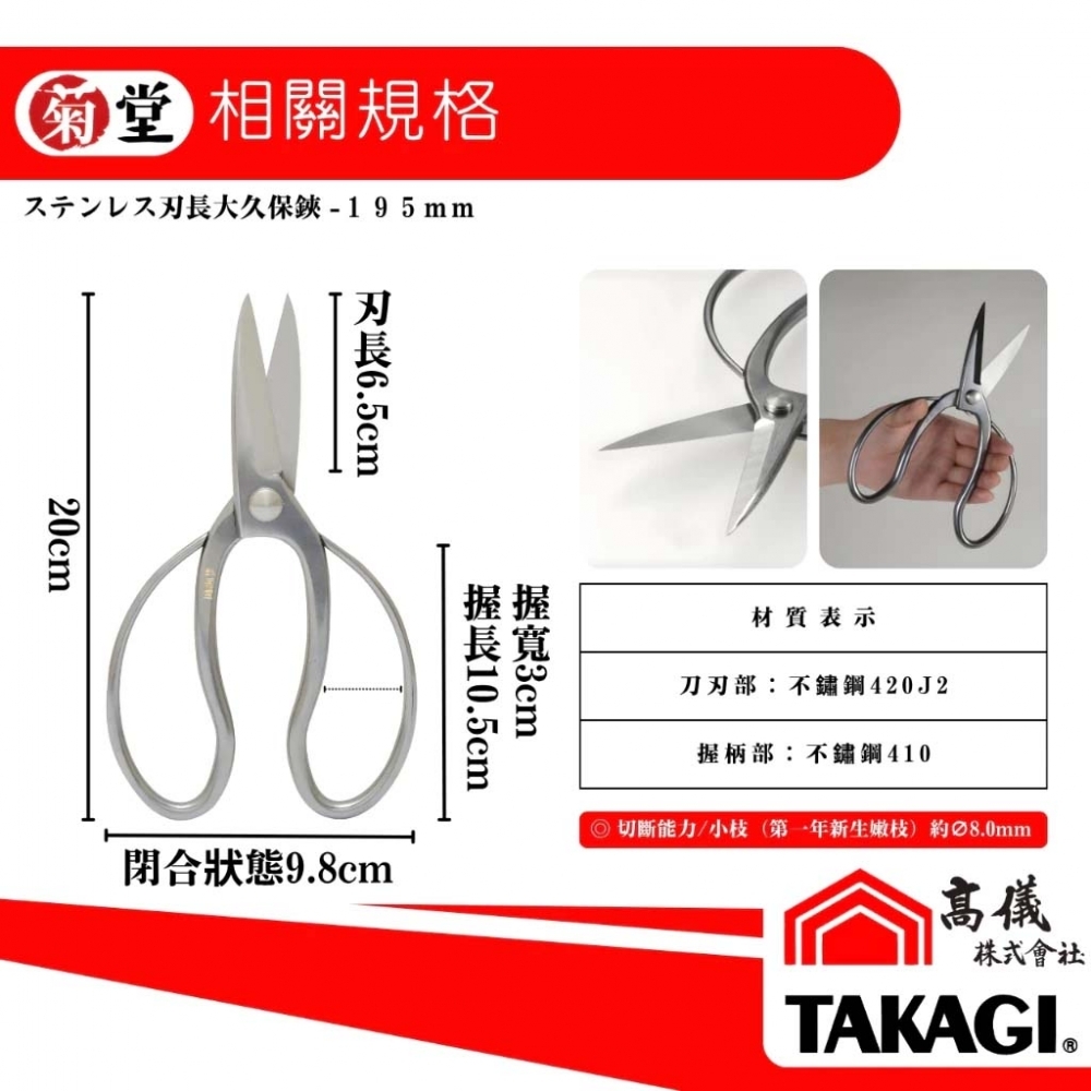 > 菊堂-不銹鋼長刃大久保鋏195mm